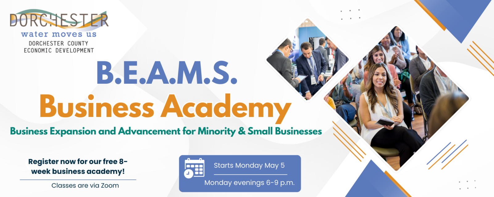 The Business Expansion and Advancement for Minority & Small Businesses (BEAMS) program was developed by Dorchester County Economic Development to address economic impacts on the business community due to COVID-19. BEAMS brings Maryland’s best entrepreneurship curriculum, local and national management experts, and Dorchester’s vast community resources to our growing business community. The program helps entrepreneurs to increase revenue and sales, manage expenses, hire more people, create a sustainable business model, and prepare to access capital. The program is offered at no cost to selected participants! BEAMS is facilitated by Will Holmes of WHC.